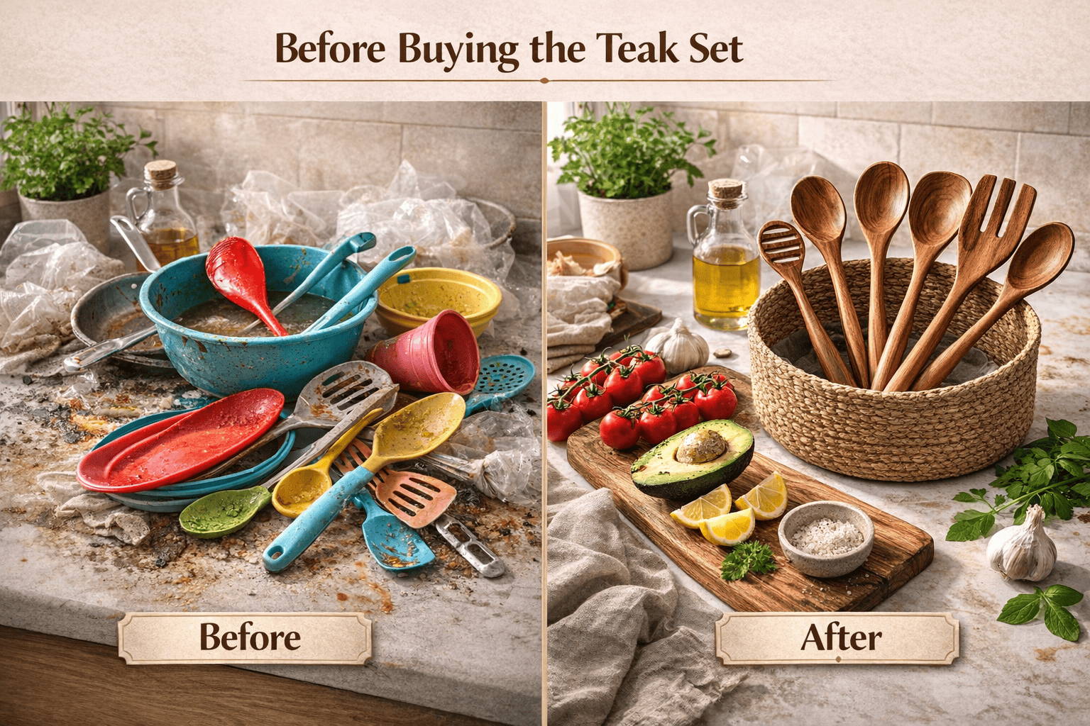Teak is naturally durable, moisture-resistant, and built for daily cooking. Tough enough for high heat yet gentle on non-stick cookware, this set is designed to last for years, not months.